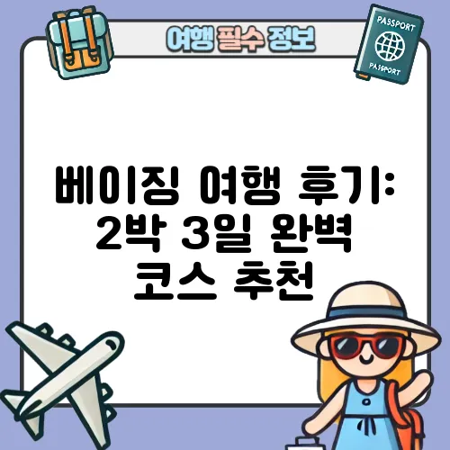 베이징에서의 여행은 역사와 현대가 공존하는 도시에서 풍부한 경험을 제공합니다. 여러분이 제안한 2박 3일 코스를 통해 베이징 관광을 즐기고, 잊지 못할 경험을 하기를 바랍니다. 다음에 다시 한 번 이 도시를 찾아보고 싶어질 것입니다!