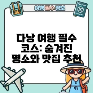 다낭 여행 필수 코스: 숨겨진 명소와 맛집 추천 2025년 02월 20일2025년 02월 15일 다낭 여행의 진수를 경험하세요! 숨겨진 명소와 현지 맛집을 추천하여 잊지 못할 여행을 만들어 드립니다.