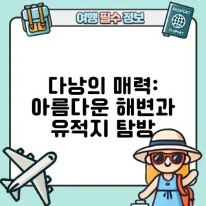 다낭 자유여행 필수 코스와 꿀팁 완벽 정리 2025년 02월 20일2025년 02월 16일 다낭 자유여행을 계획 중이신가요? 필수 코스와 꿀팁을 완벽 정리했습니다. 즐거운 여행을 위한 정보가 가득합니다!